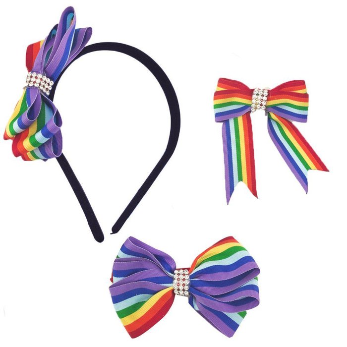 Kit 3 Unidades Tiara Laço Enfeite Lgbt Arco Iris Lgbtqia+ Multicolor