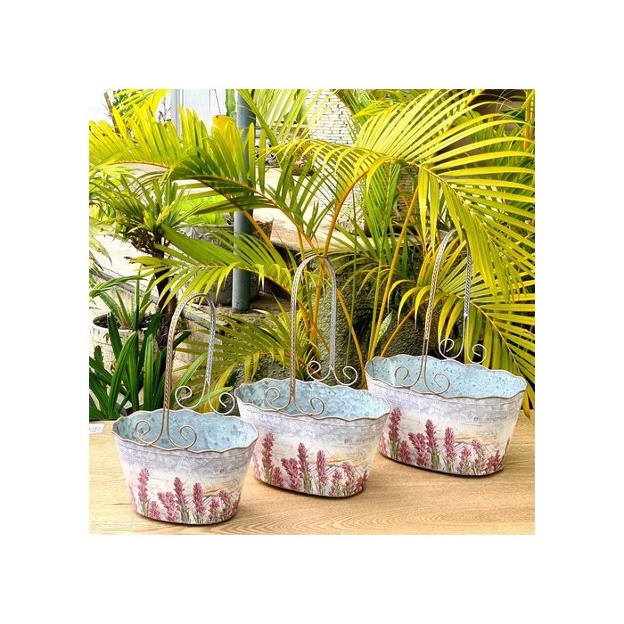 Kit 3 Vasos Floreiras Metal Galvanizado Com Alça 15x28