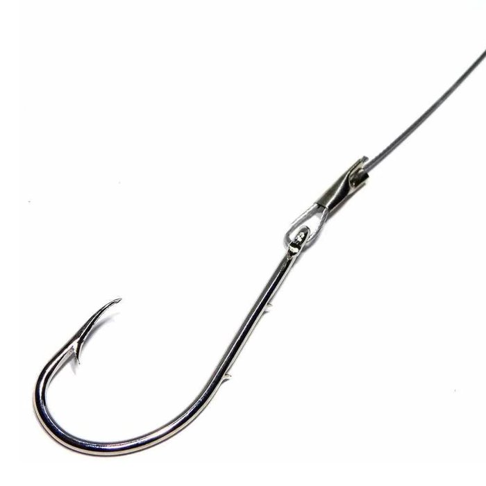 Anzol 4330 Marine Com Empate de Aço flexível e Girador, ideal para pescaria de peixes com dentição, pois evita que a linha seja cortada. Produtos originais e de ótima qualidade.