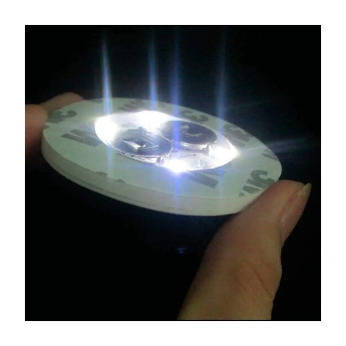 Possui fita dupla face adesiva que adere ao fundo do copo, para acender os leds basta apertar o botão no centro da base. Acompanha bateria, o led possui 3 funções de iluminação.