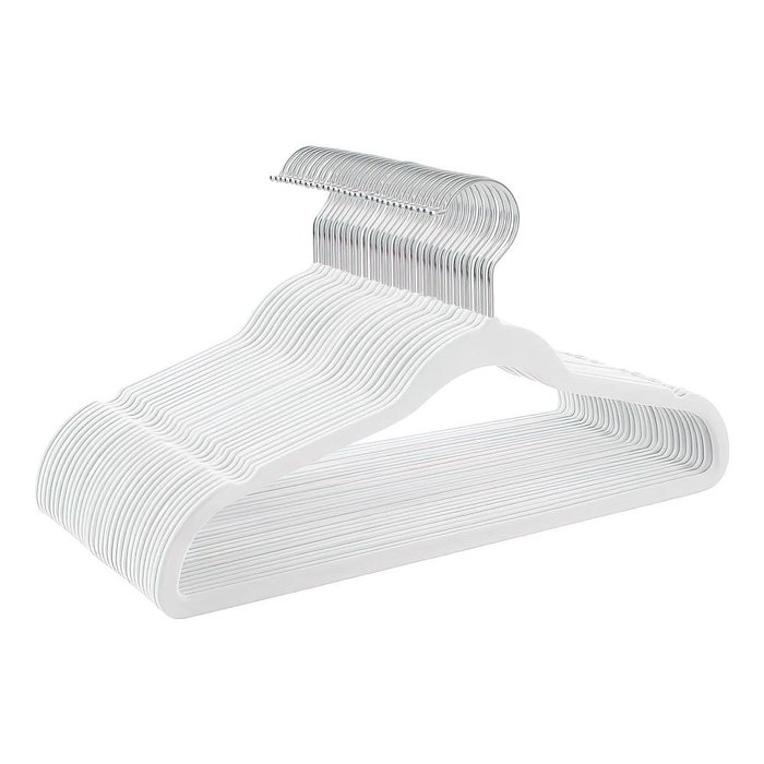 Kit 30 Cabides de Veludo Luxo Ultra Fino Antideslizante - Branco