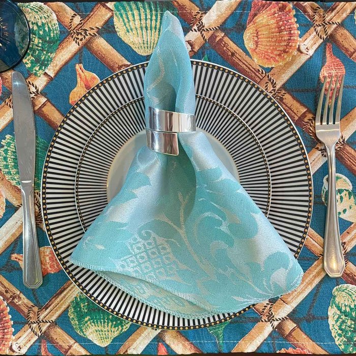 O guardanapo em tecido Jacquard tem uma linda estampa em medalhão e pontas arredondadas. Item fino que traz charme para a hora das refeições.