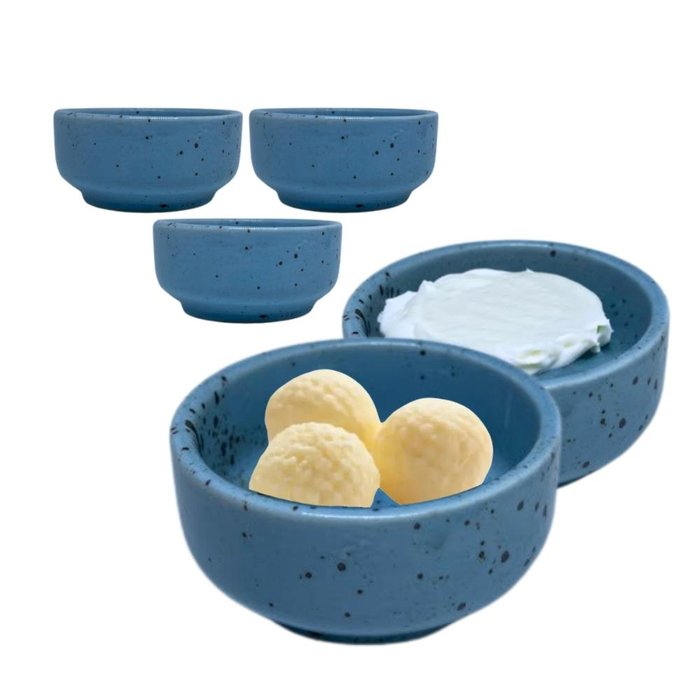 Kit 30 Mini Manteigueira Individual para Restaurante Porcelana Azul 60ml Porta Geléia para Hotel