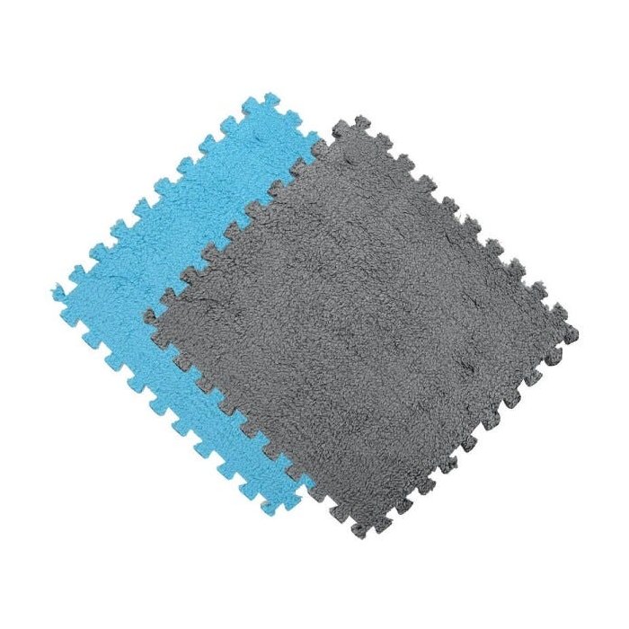 Kit 30 Tapete Eva Pelúcia Piso Macio Criança Bebe 30x30cm Azul e Cinza