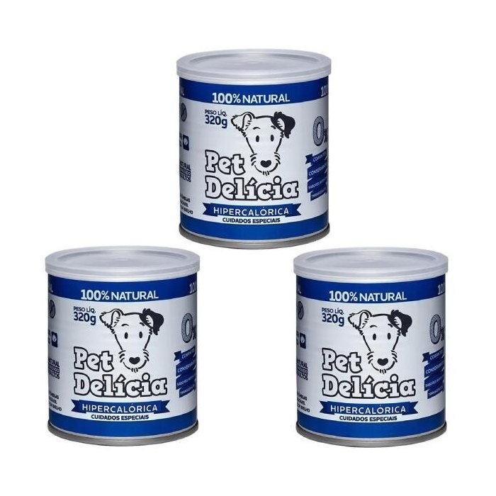 Kit 3Un Ração Úmida Para Cães Pet Delicia Hipercalórica 320G