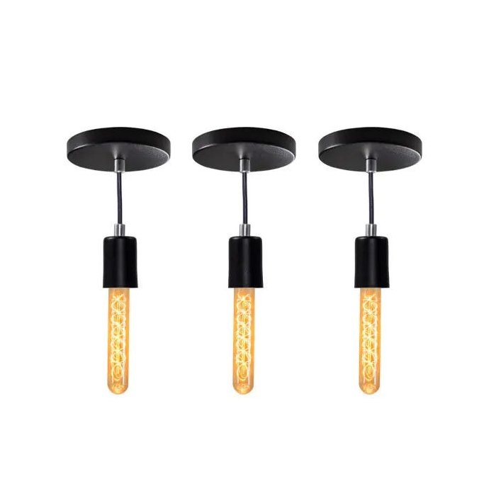 Kit 3x Pendente Tubo Cilindro Alumínio Preto + Filamento Carbono T30 110V St458 Preto