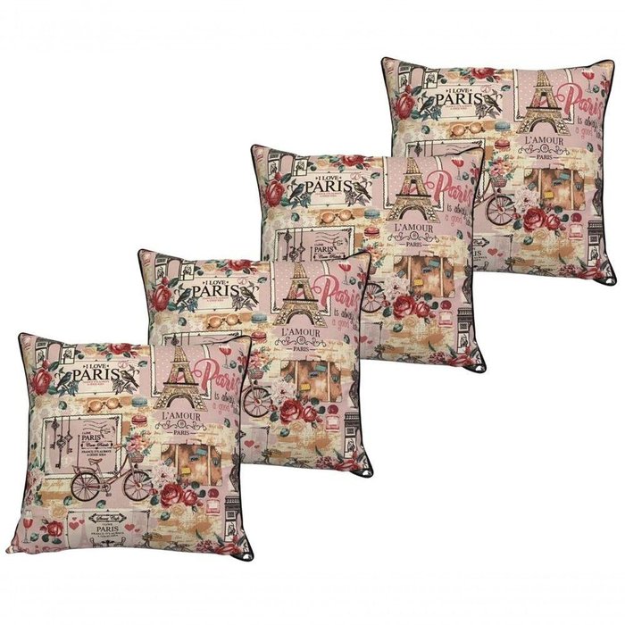 Kit 4 Almofadas Cheias Belize Impermeável Paris Fundo Rosa 45cmx45cm Única