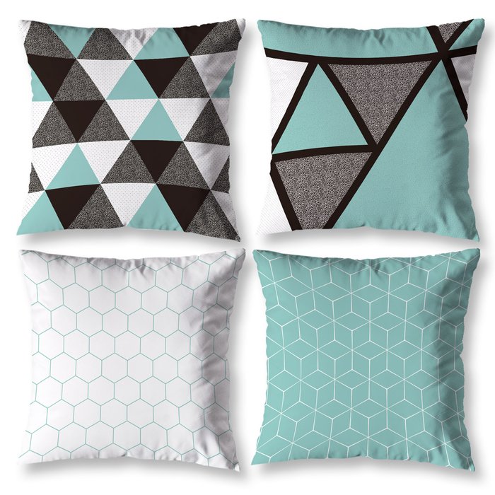 Kit 4 Almofadas Cheias Decorativas Estampada 40cm Coloridas Digital Zíper Invisível Geométrico Verde