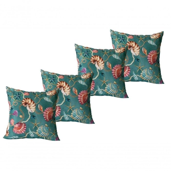 Kit 4 Almofadas Cheias Fundo Do Mar 43Cmx43Cm azul/verde