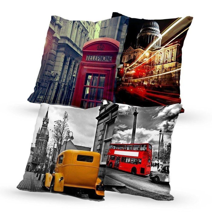 Kit 4 Almofadas Decorativas Own Londres Cartões Postais - 45x45 cm Tecido Confortável -