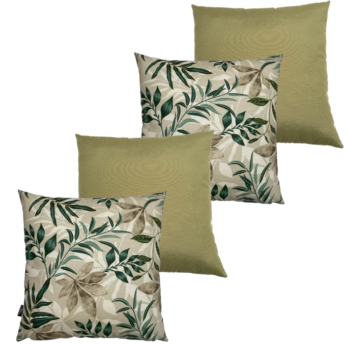 Kit 4 Almofadas Impermeável Antimofo Antiácaro Folha Verde Marrom Verde Oliva Área Externa 45cmX45cm