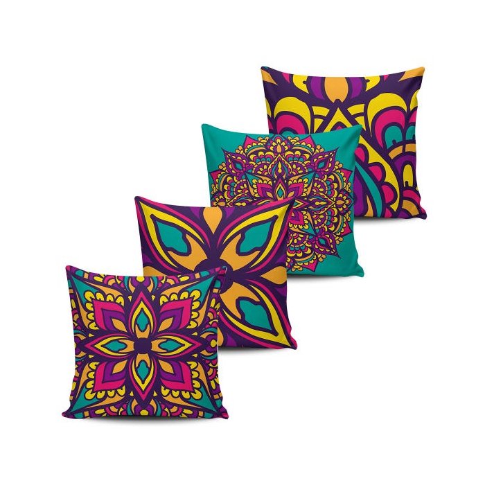 Kit 4 Almofadas Mandala Roxa e Amarela 45x45cm