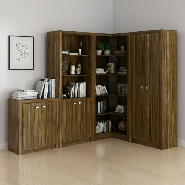 1 Armário Baixo, 1 Armário Alto, 1 Estante de Canto e 1 Estante com Armário