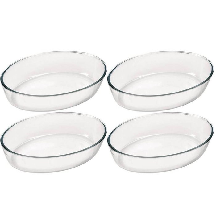 Kit 4 Assadeiras Travessas Formas Médias de Vidro Temperado Oval 2,4 L Marinex