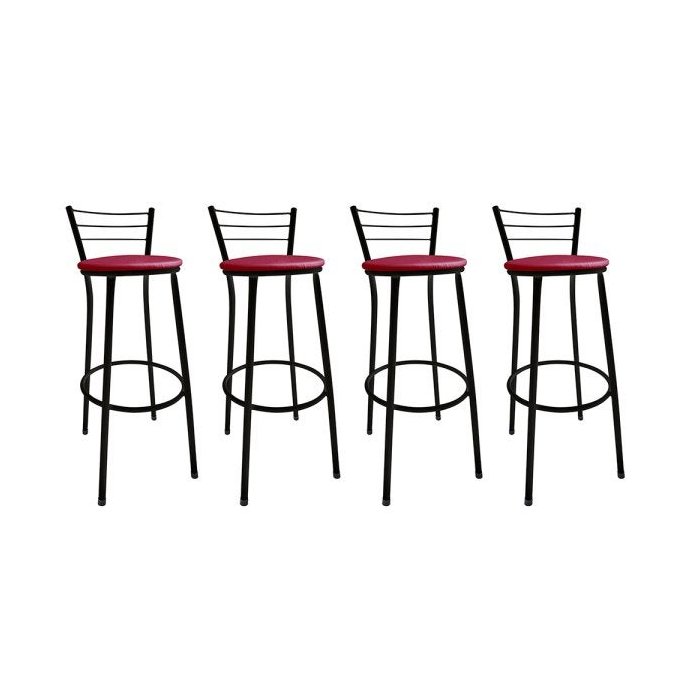 Kit 4 Banco Alto Bistrô Aço Em Pintura Epóxi Preto E Assento Vinho