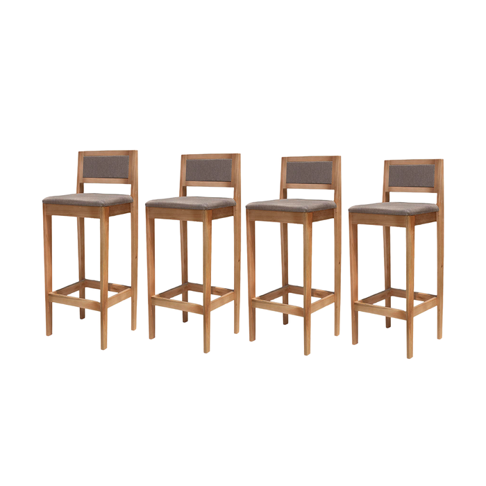 Kit 4 Banqueta Alta de Madeira com Assento em Linho e Encosto em Linho Hellen: Mel e Linho Cinza Mel e Linho Cinza