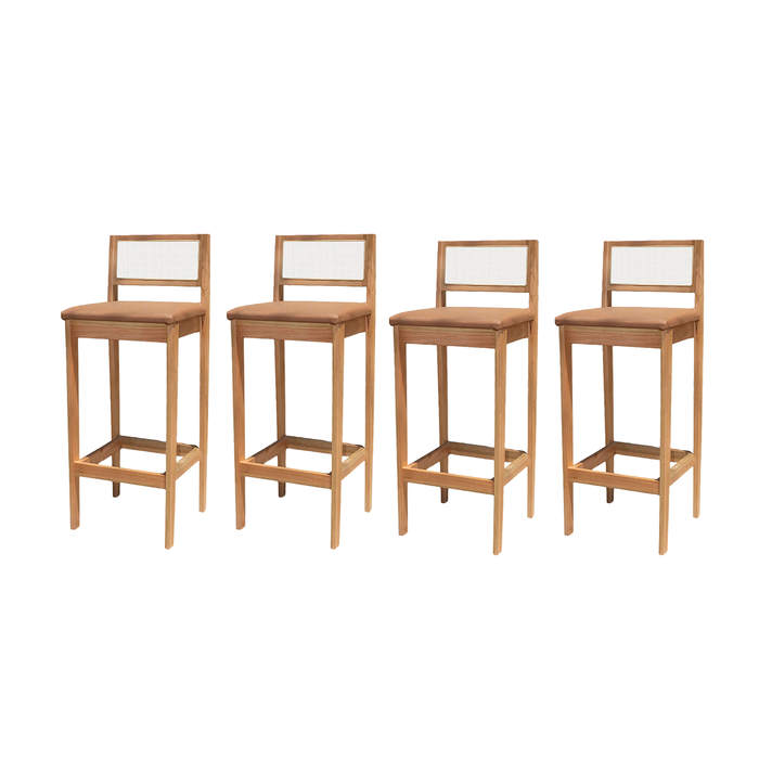 Kit 4 Banqueta Alta de Madeira com Assento Estofado Corino e Encosto em Palhinha Bruna: Mel e Sintet