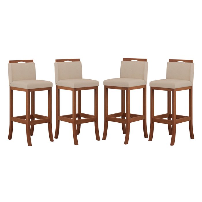 Kit 4 Banquetas Alta de Madeira para Cozinha Suede Bege Bege