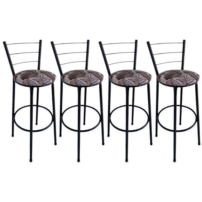 Kit 4 Banquetas Alta Preta com Encosto Assento Folhagem Marrom Jaddi