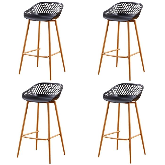 Kit 4 Banquetas Altas Clarice Sidera Rivatti Polipropileno Preto Base Metal Aço Preto