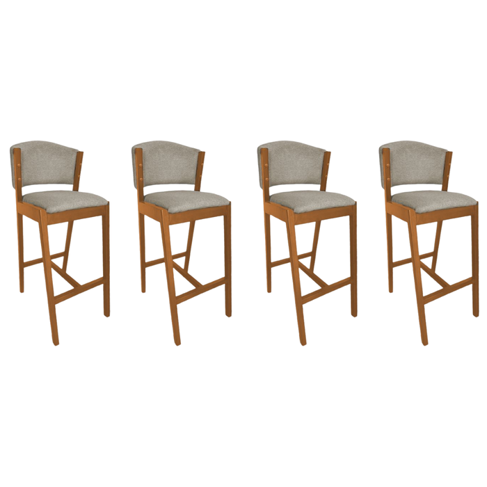 Kit 4 Banquetas Altas de Madeira Maciça Ana em Linho Premium Cor do Assento:bege Linho;cor da Estrut