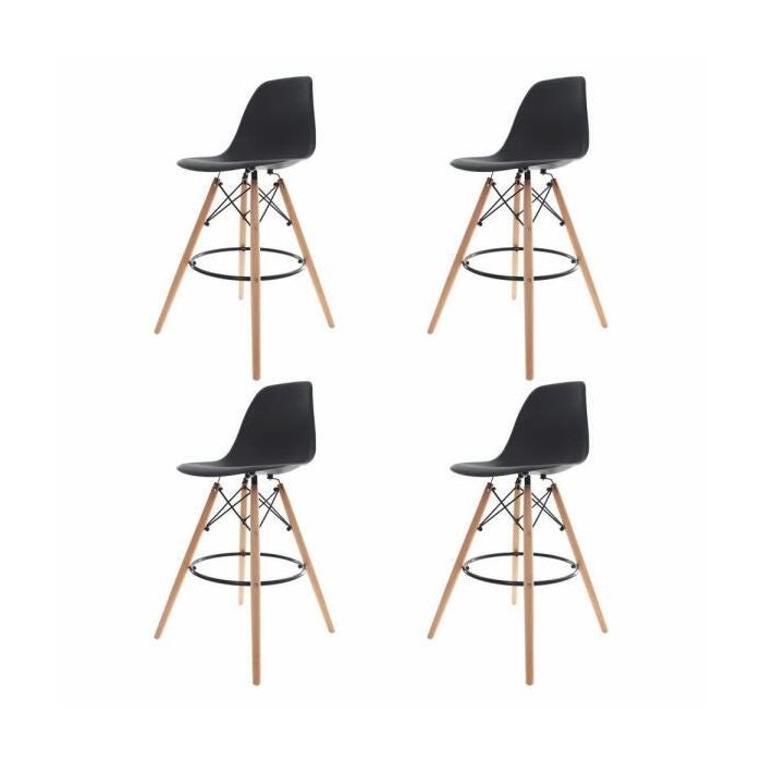 Kit 4 Banquetas Altas Para Bar Cozinha Charles Eames Eiffel - Preto