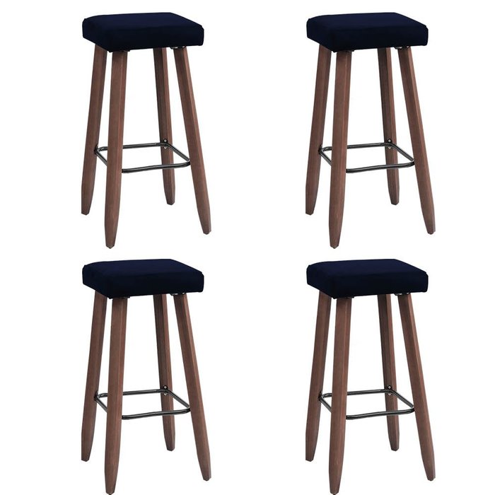 Kit 4 Banquetas Altas Quadradas Pés Madeira Paris:azul