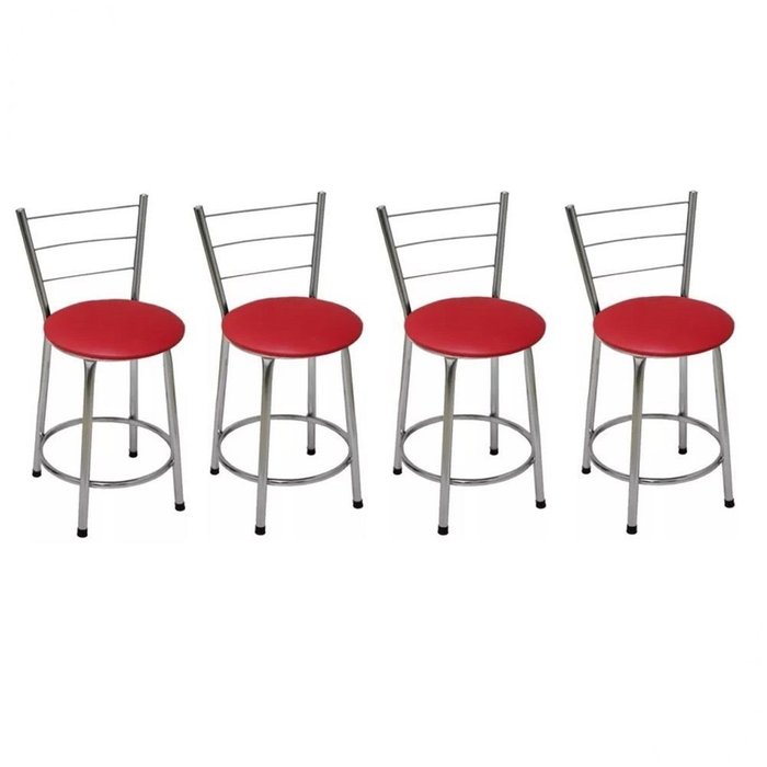 Kit 4 Banquetas Baixas Cromada com Encosto Assento Vermelho Vermelho