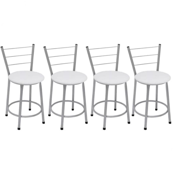 Kit 4 Banquetas Baixas Prata com Encosto Assento Branco