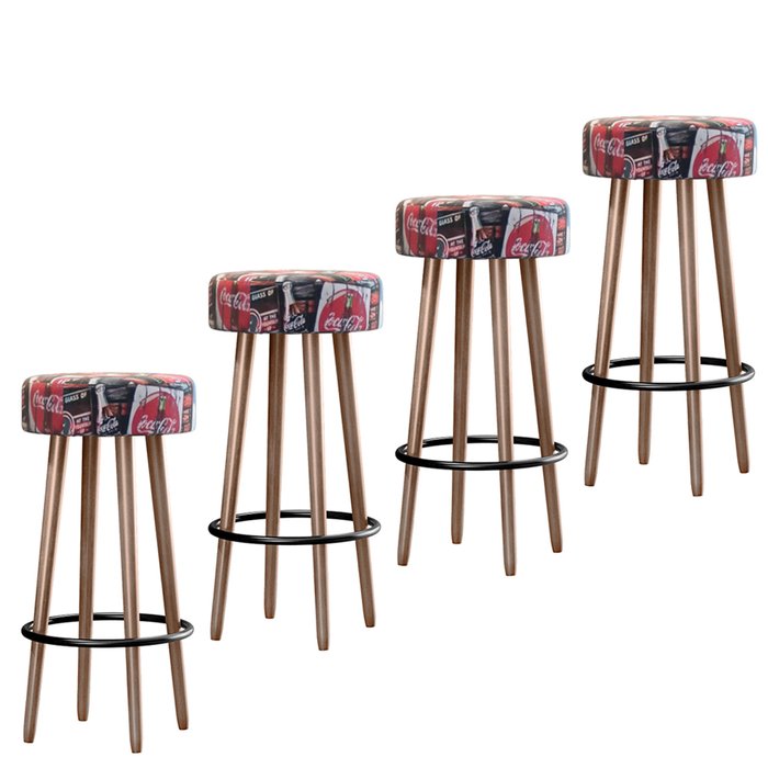 Kit 4 Banquetas Banco Alto Berlin Suede Coca Cola Bar Cozinha Pés Madeira Ms Decor