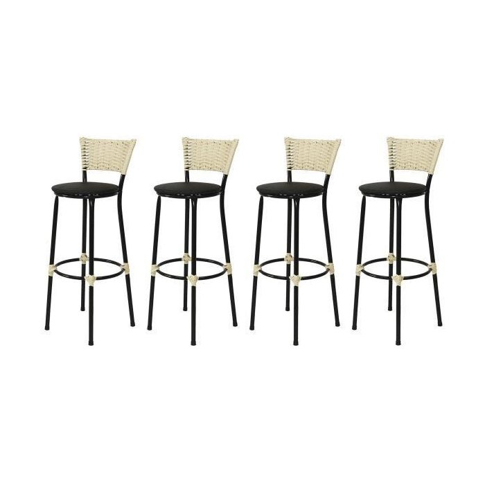 Kit 4 Banquetas Bistrô Aço Junco Marfim Assento Preto