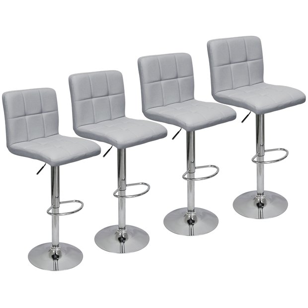 Kit 4 Banquetas Confort Gomos Estofada Couro Giratória C/ Regulagem Cinza