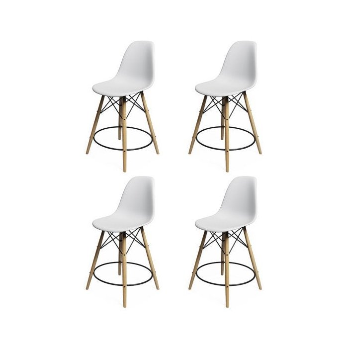 Kit 4 banquetas eames eiffel de madeira assento branco
