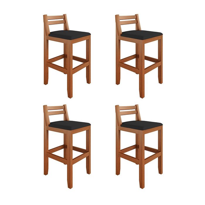 Kit 4 Banquetas em Madeira Maciça Ibiza 78 Cm - Malbec Assento Preto PRETO