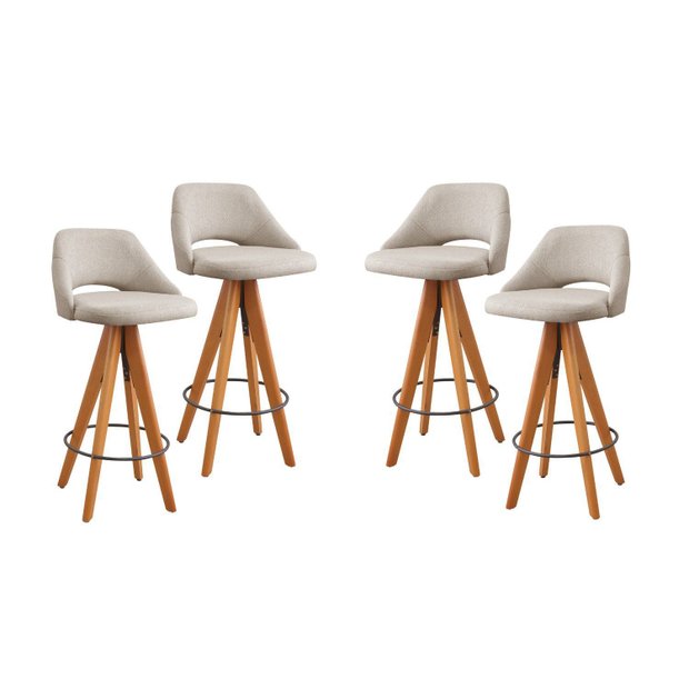 Kit 4 Banquetas Giratórias Estofadas com Encosto Nicole Bege Claro