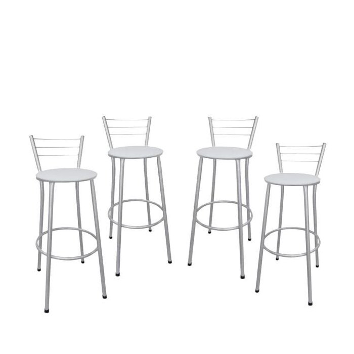 Kit 4 Banquetas Média Prata com Assento Branco