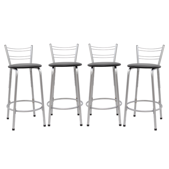 Kit 4 Banquetas para Balcão Flórida Prata 60cm Cozinha Gourmet Bistrô Bancada Piscina Área de Lazer Assento Preto