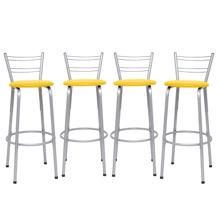 Kit 4 Banquetas para Balcão Flórida Prata Bistrô Ilhas Cozinha Gourmet Bares Amarelo