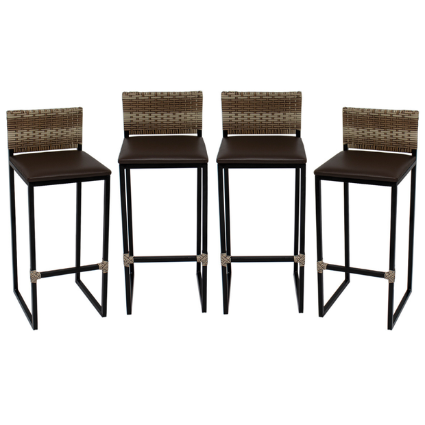 Kit 4 Banquetas Quadrada Junco Cappuccino para Balcão Ilha Cozinha Área Gourmet Bancada Piscina Bar Marrom Escuro