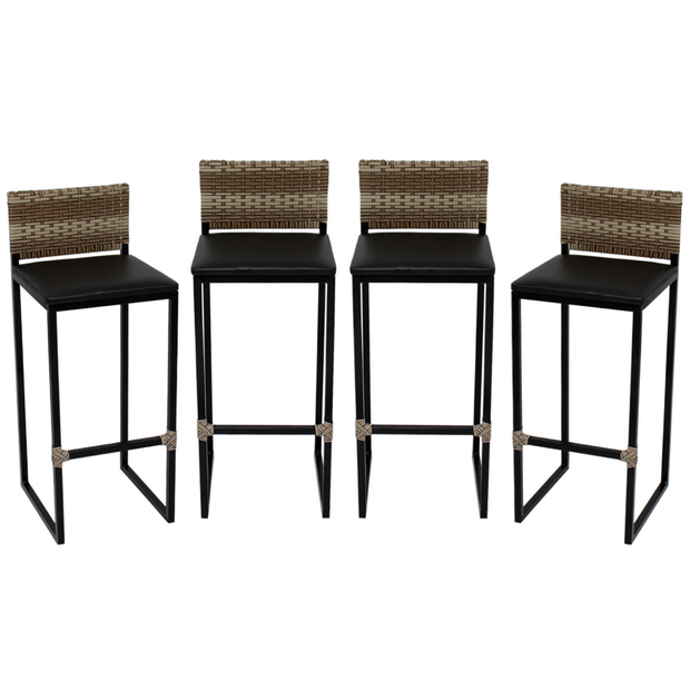Kit 4 Banquetas Quadrada Junco Cappuccino para Balcão Ilha Cozinha Área Gourmet Bancada Piscina Bar Preto