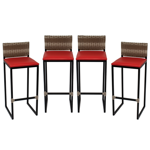 Kit 4 Banquetas Quadrada Junco Cappuccino para Balcão Ilha Cozinha Área Gourmet Bancada Piscina Bar Vermelho