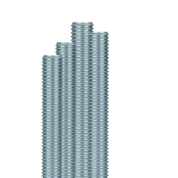 Com rosca contínua no padrão UNC (rosca grossa americana), cada barra tem 1/4" de diâmetro (6,35 mm) e cerca de 1 metro de comprimento, sendo compatível com porcas e arruelas padrão UNC. São indicadas para uso em serralheria, construção civil, projetos industriais, montagem de painéis, estruturas metálicas e instalações elétricas.