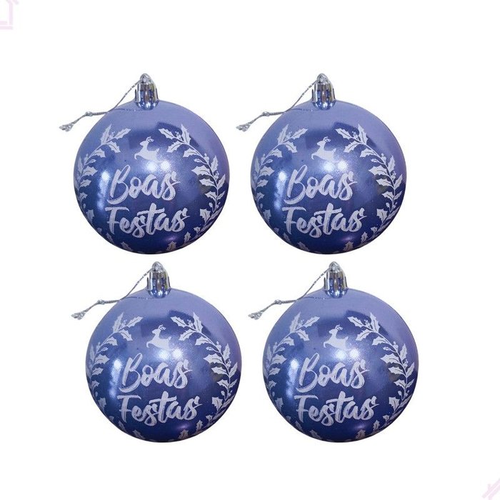 Kit 4 Bolas de Natal Azul Boas Festas Enfeite Natalino Pendurar na Árvore
