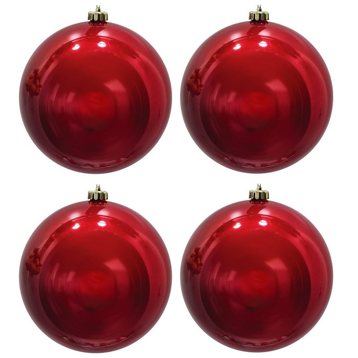 Conjunto de 4 bolas de natal vermelhas, tamanhos grandes (12cm de diâmetro).