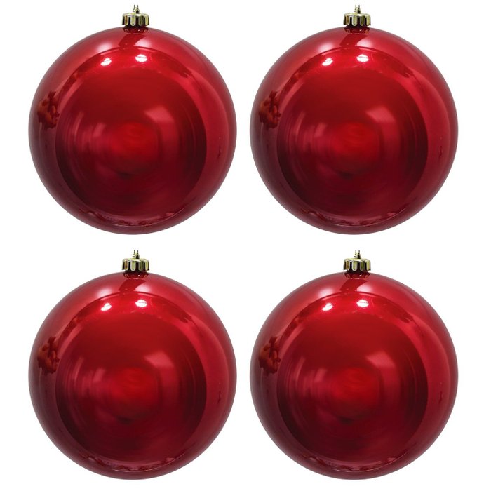 Conjunto de 4 bolas de natal vermelhas, tamanhos grandes (14cm de diâmetro).