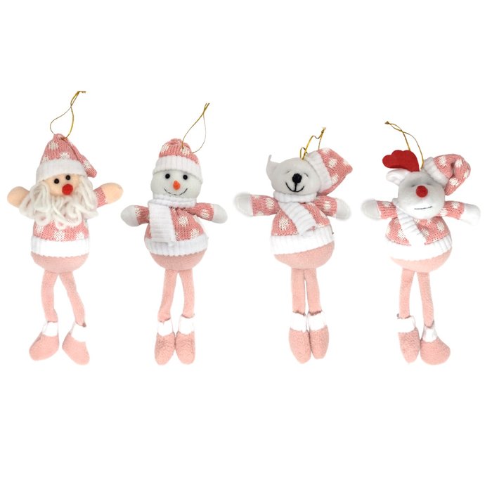Kit 4 Bonecos Perna Longa Pelúcia Rosa Papai Noel, Boneco de Neve, Rena e Urso Pendente 25cm - Maste