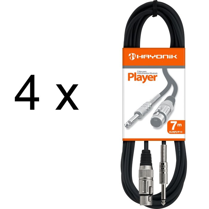Kit 4 Cabos Microfone XLR X P10 7Mt Player Hayonik XLR(F)/P10-7M