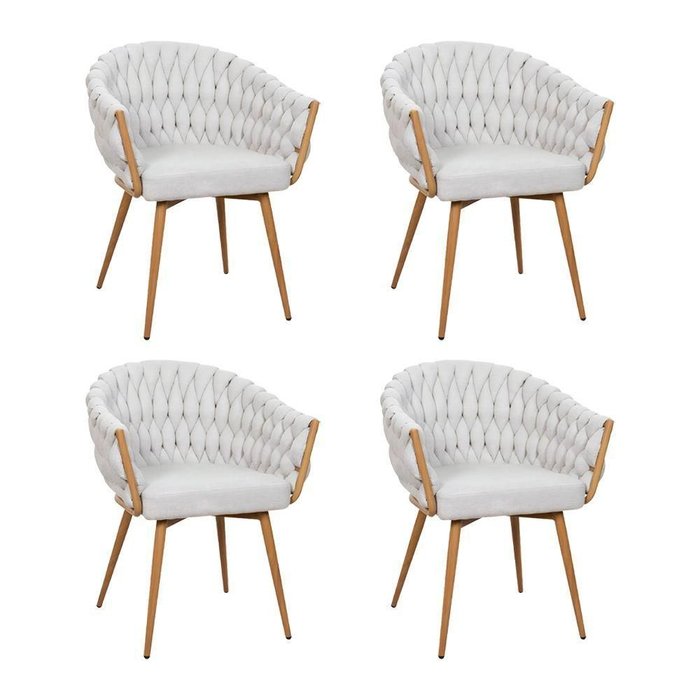 Kit 4 Cadeira De Aproximação Eloá Estrutura Aço Carbono Laminado Natural Com Estofado Linho Cru