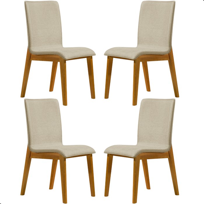 Kit 4 Cadeira de Jantar Estofada Alice Linho Bege Base Madeira Castanho Bege