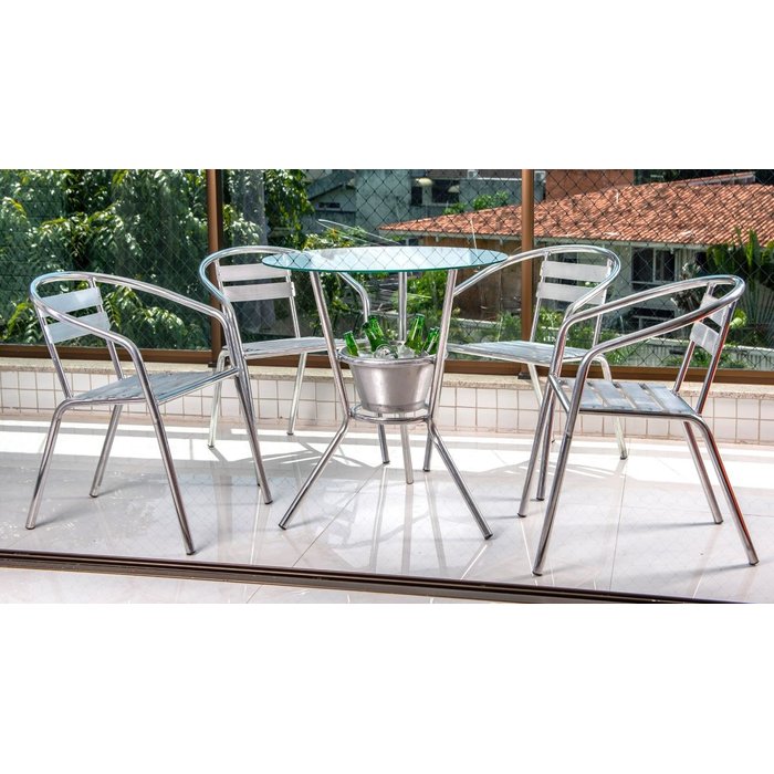 Kit 4 Cadeiras + 1 Mesa Alumínio Varanda Apartamento Área Externa Casa Top Luxo Centro Piscina Jardi Prata